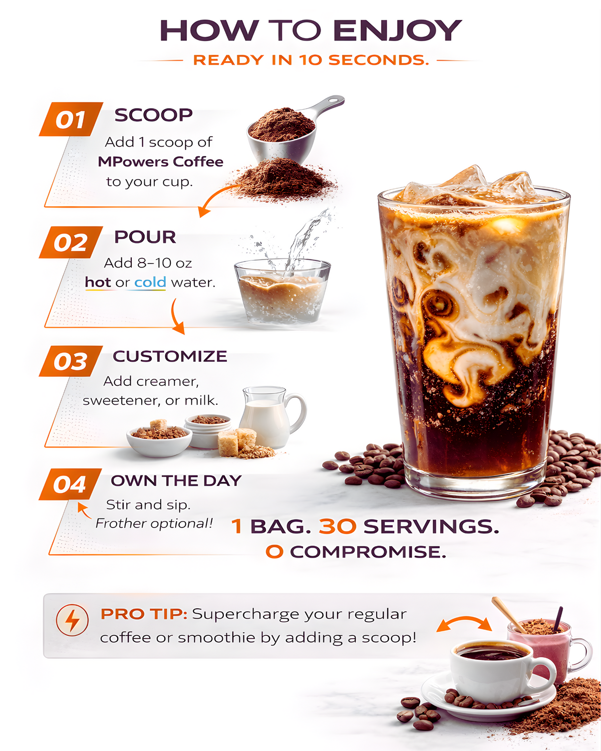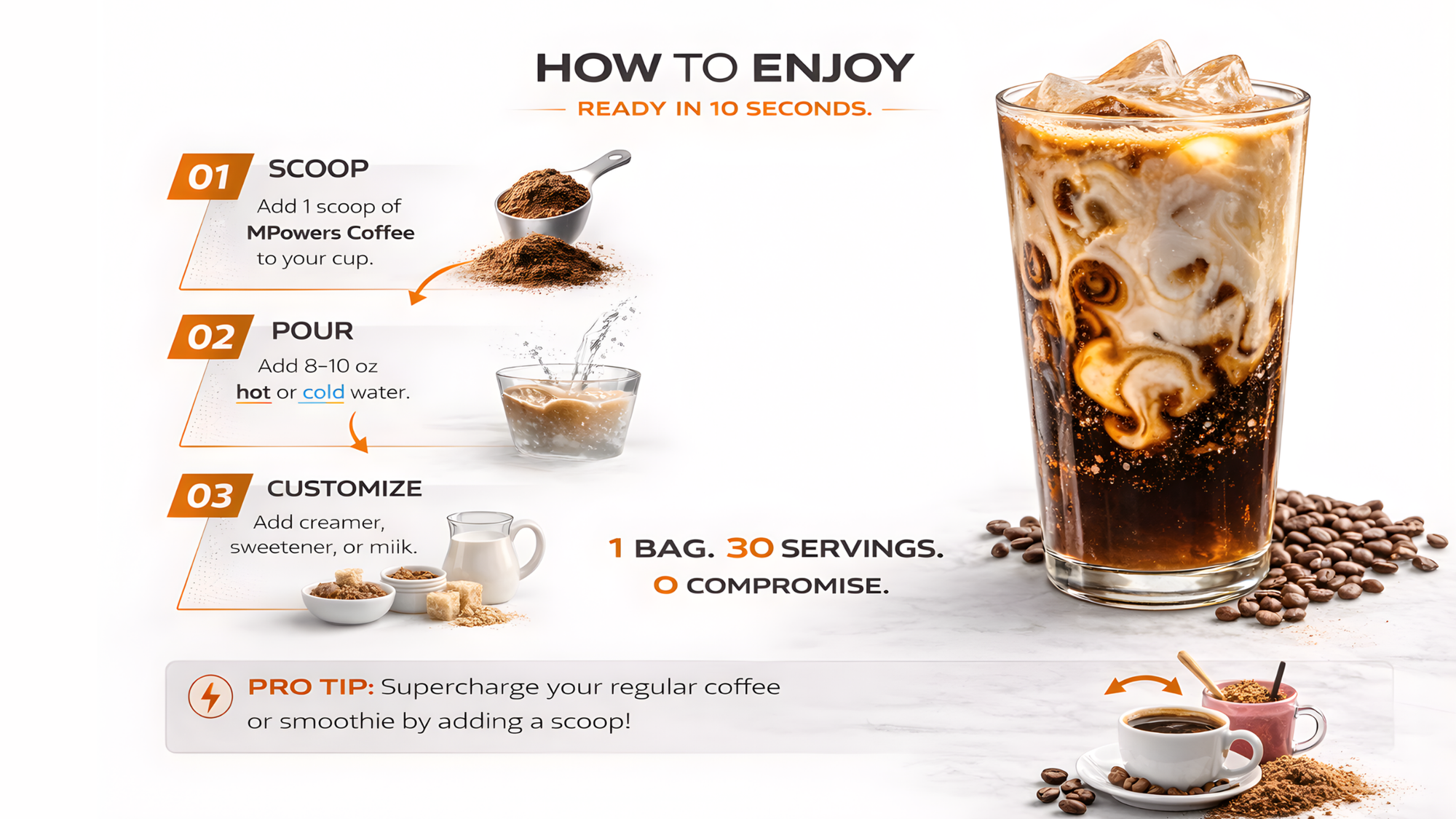 Pro tip: Add milk or blend it for a creamy latte vibe. Or add a scoop to your regular coffee for an extra kick. -
